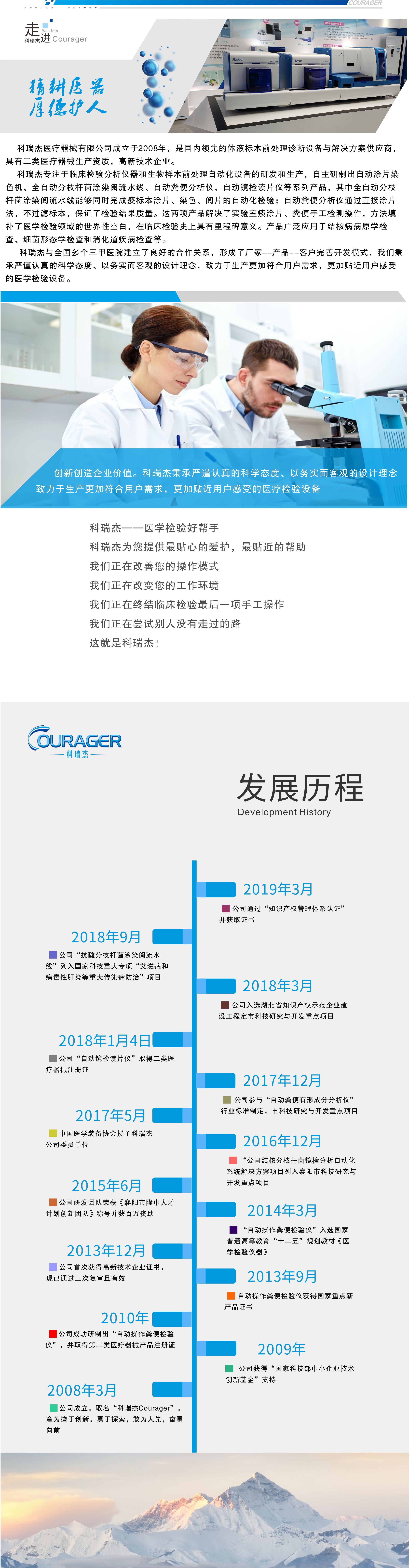 科瑞杰醫療器械有限公司是集研發(fā)、生產(chǎn)、銷(xiāo)售于一體的國家高新技術(shù)企業(yè),提供臨床體液診斷、結核病病原學(xué)診斷全套解決方案。